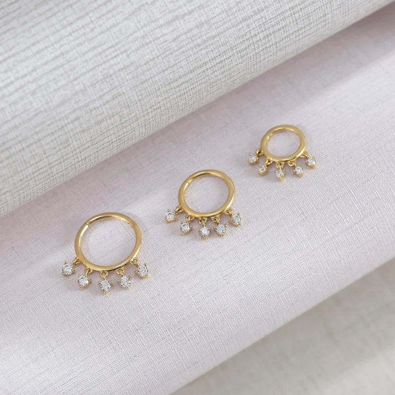 14K Gold Heart Dangle Cartilage Septum Helix Hoop 16g 6/8/10mm