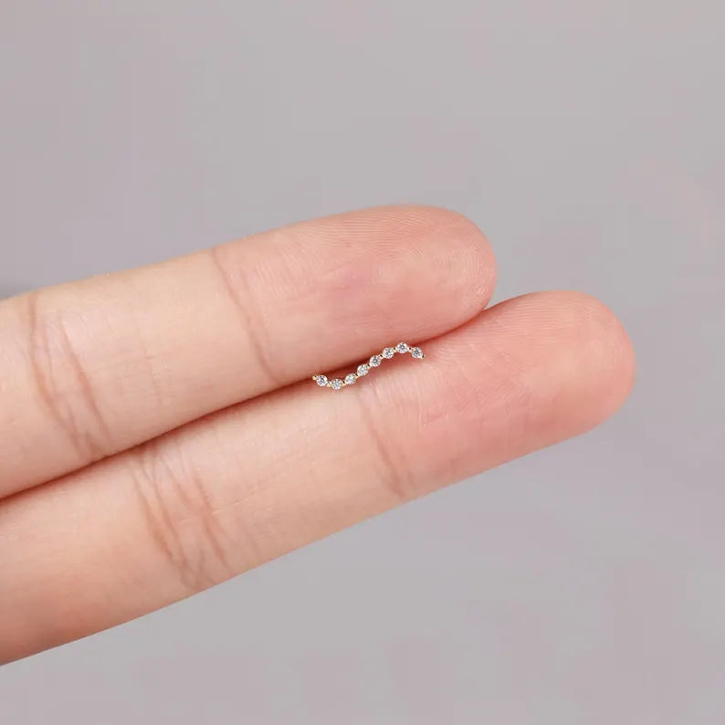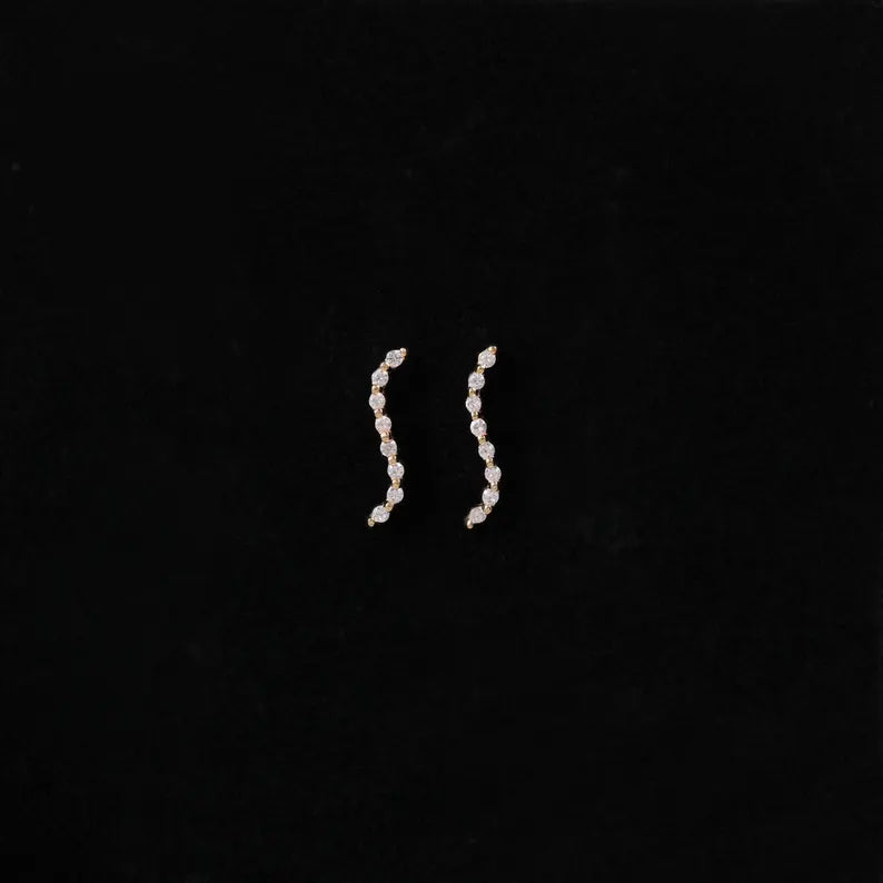 Minimalist 14K solid gold ear climber with sparkling crystals.