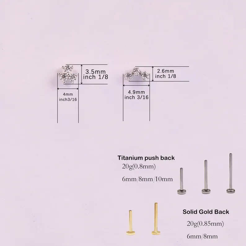 - The item combines 14k solid gold with implant-grade titanium push-in back.