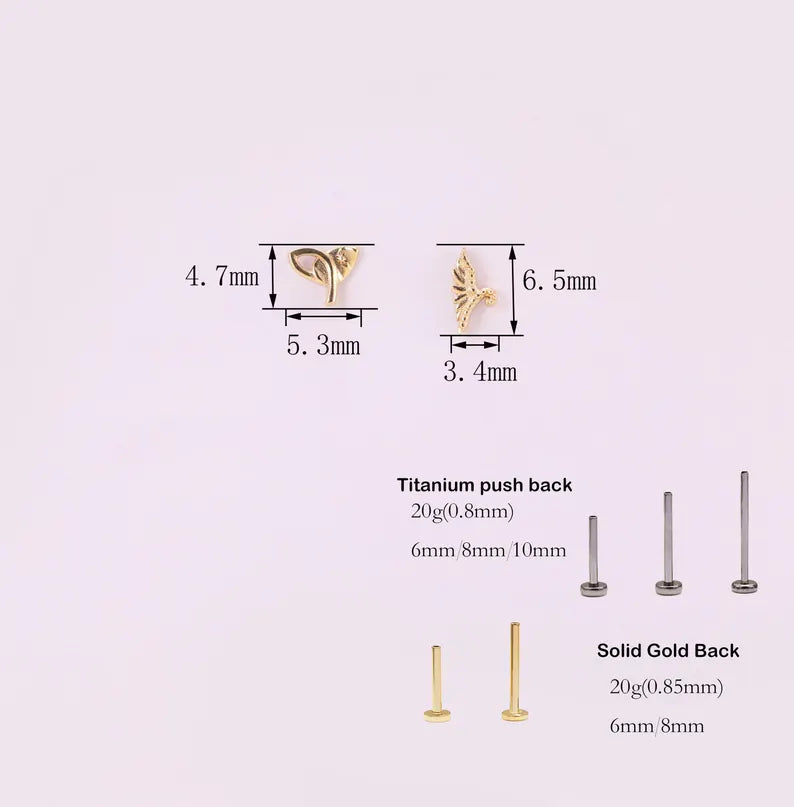 - The item combines 14k solid gold with implant-grade titanium push-in back.