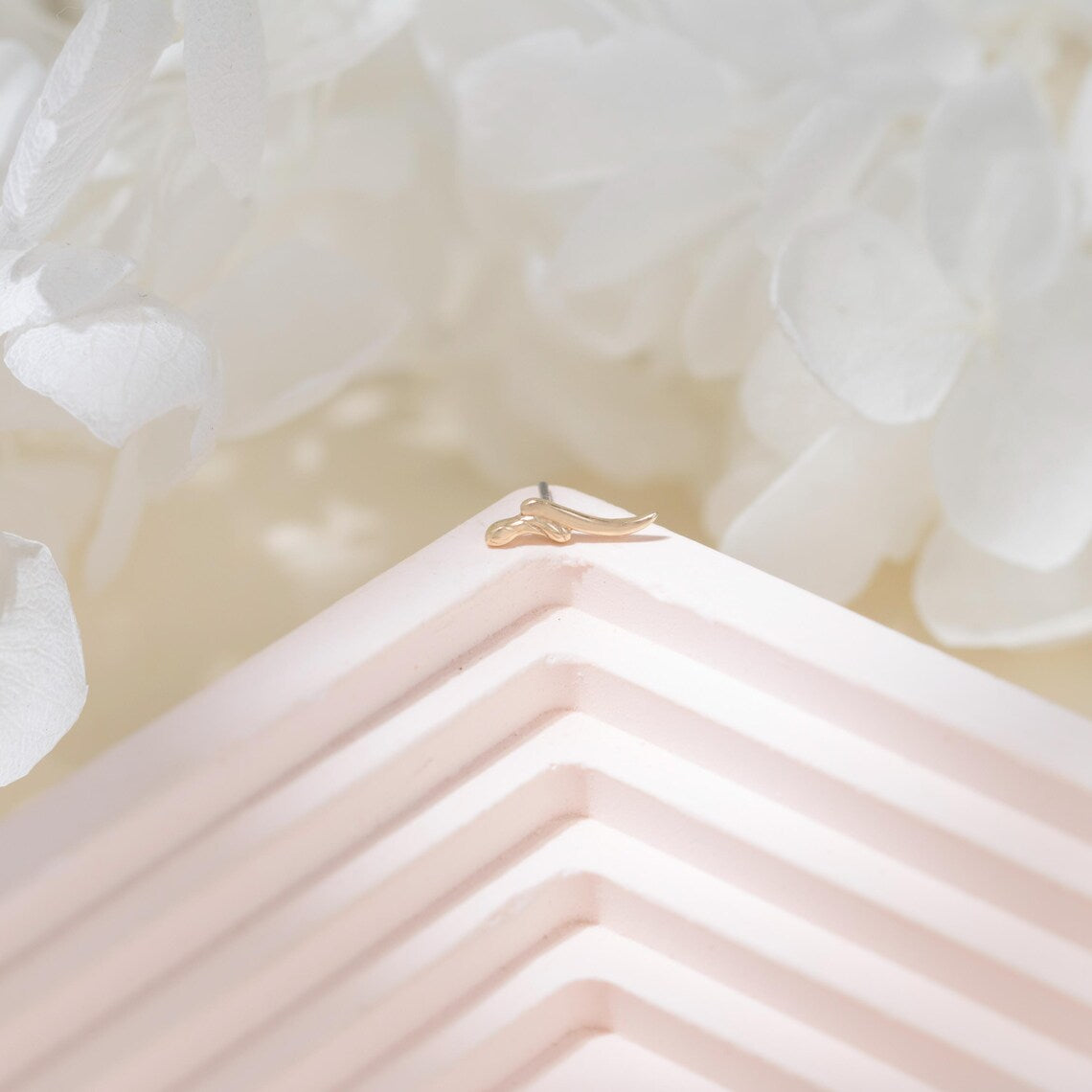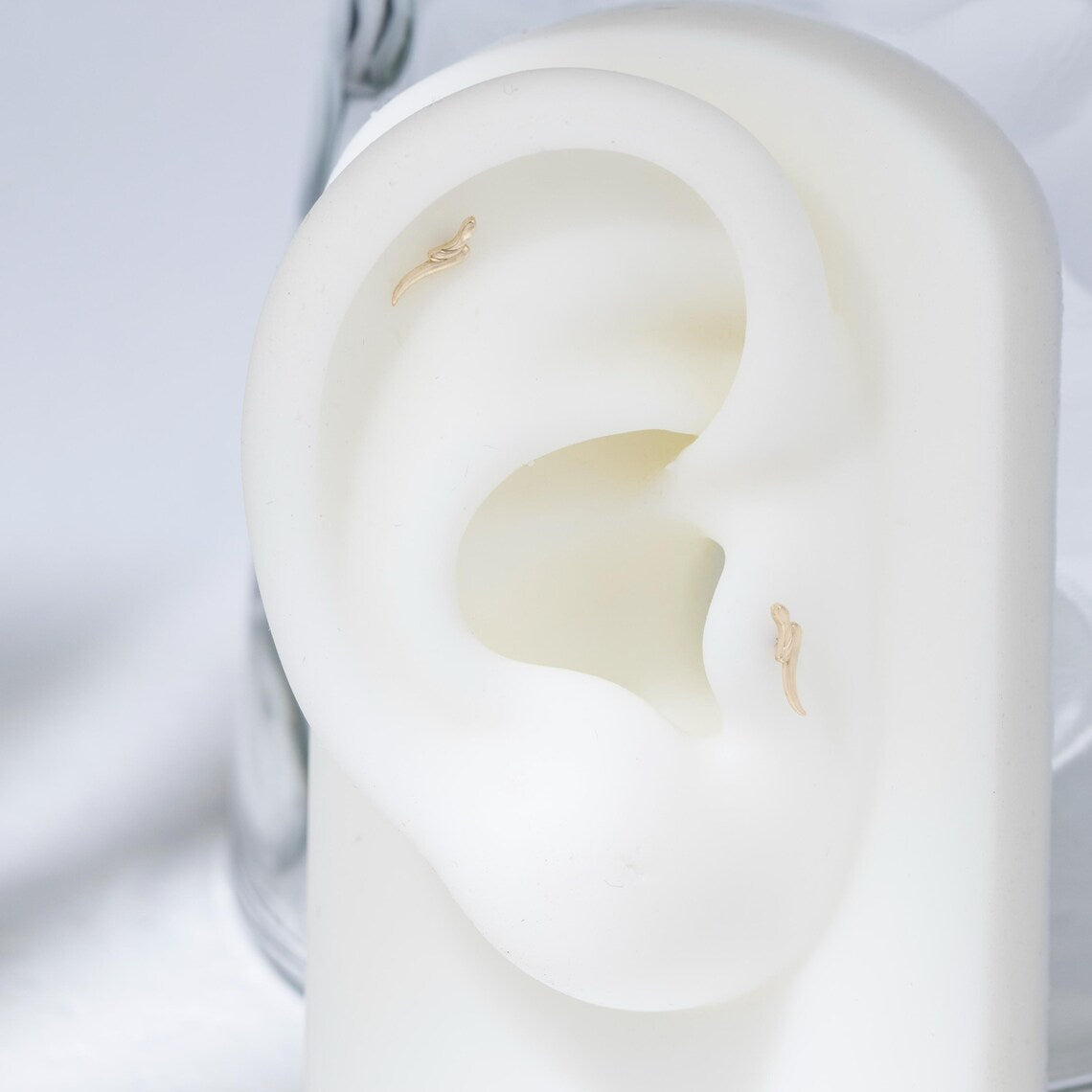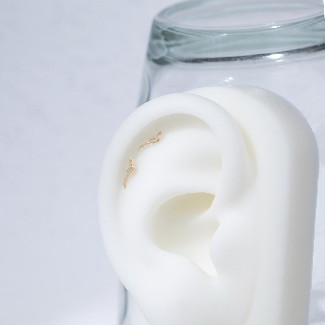A tiny snake-shaped stud earring made of 14K solid gold, designed for cartilage piercings like helix, tragus, or lobe. Minimalist and secured with a flat push back.