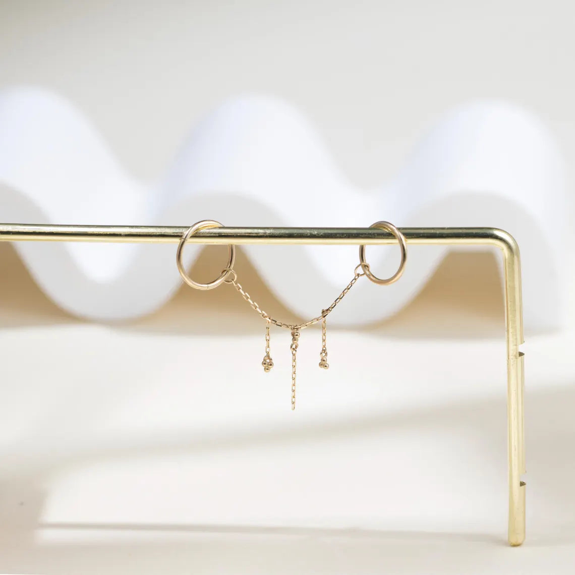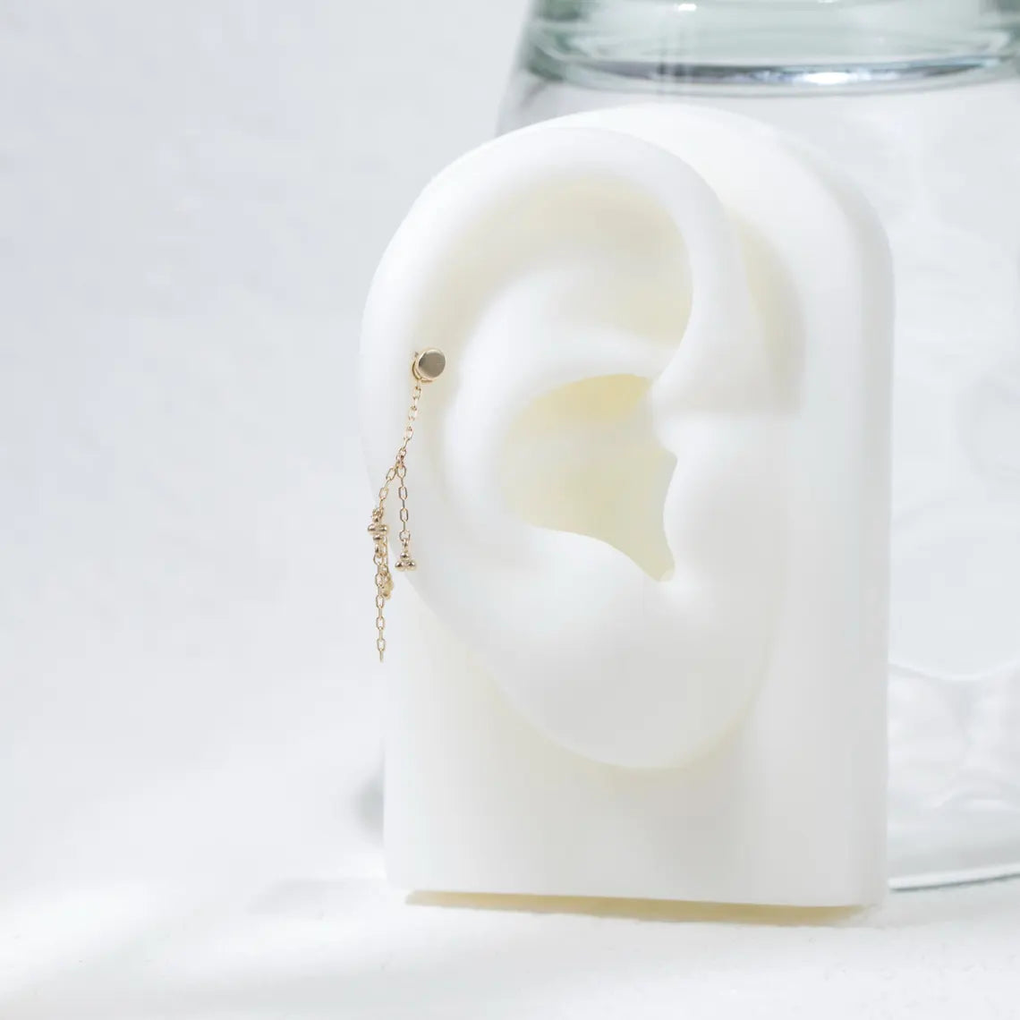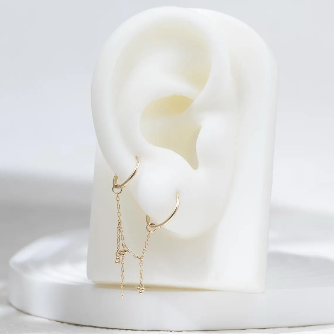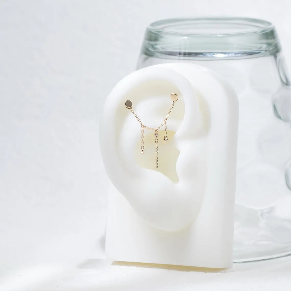This 14K solid gold triple braided chain attachment is designed for cartilage, helix, and conch piercings. Its delicate linking chain style creates a stylish and versatile ear accessory.